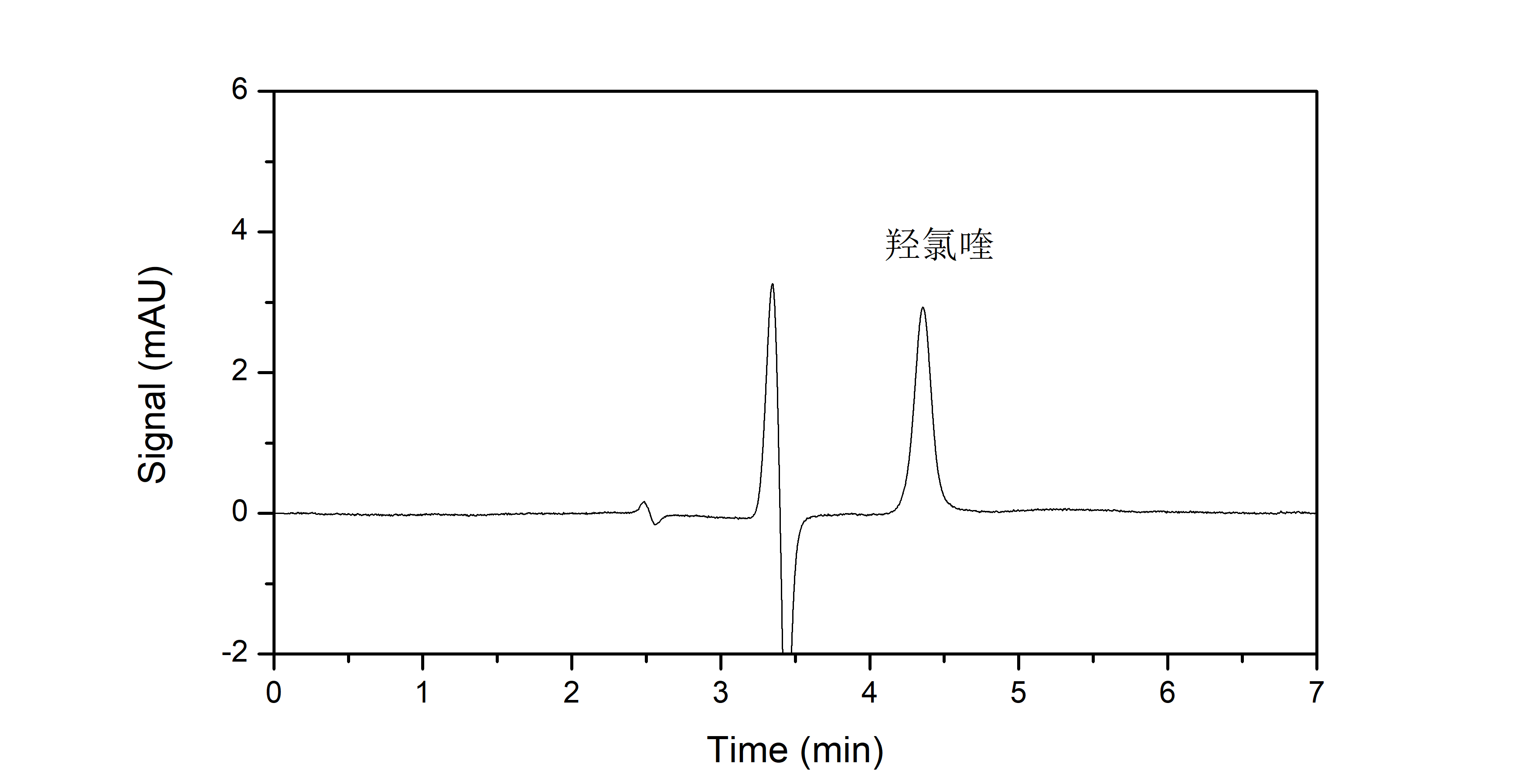 标准溶液配制:精密称量羟氯喹,加水溶解并定容,配制浓度为4mg/L的标准品溶液。