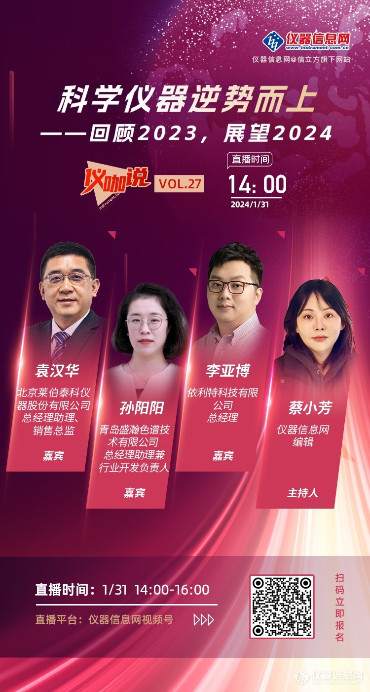为了助力企业在危机时刻拨云见日,找到自身的发展着力点,仪器信息网特别推出《仪咖说》Vol.27:科学仪器逆势而上,回顾2023,展望2024。作为国产科学仪器的优秀代表,向日葵污APP下载真诚邀请到了:北京莱伯泰科仪器股份有限公司总经理助理、销售总监袁汉华、向日葵污APP下载科技有限公司总经理李亚博、青岛盛瀚色谱技术有限公司总经理助理孙阳阳共同探讨仪器行业与企业在内外挑战下的可持续发展之道。